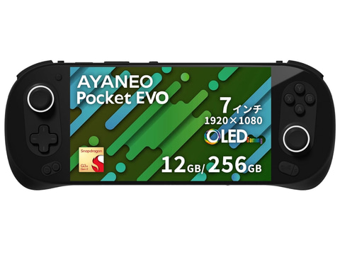 AYANEO Pocket EVOは、Android向けゲームを遊べるポータブルゲーミング機。タッチ操作のゲームもコントローラでプレイ可能とするボタンマッピング機能を搭載する。主な仕様は、ディスプレイが7型有機EL(最大165Hz駆動、1,920×1,080ドット)、SoCがSnapdragon G3x Gen 2、メモリが12GB LPDDR5X、ストレージが256GB UFS4.0、OSがAndroid。