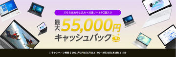 最大5万5千円還元キャンペーン。ぷらら光加入とノートPC購入で