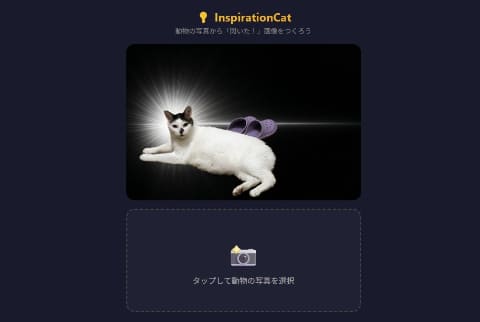 InspirationCatは、ユーザーが用意した動物の写真から背景を自動的に消去し、代わりに「ピキーン」とひらめいたような背景に差し替える画像メーカーの類のWebアプリだ。初日だけで50万アクセスを達成したという。