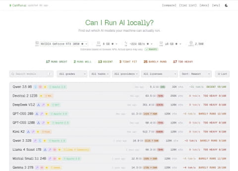 今のPCでローカルLLMがどの程度動くのか、ブラウザで自動判定するサイト