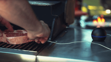 BBQの強い味方。Wi-Fi管理で絶妙の焼き具合に仕上げ、スマホに通知する肉用デバイス