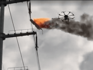中国国営電力会社、電線に引っかかったゴミを「火炎放射ドローン」で焼却