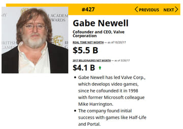 Valveの長ことゲイブ氏、米国長者番付でTop 100入り