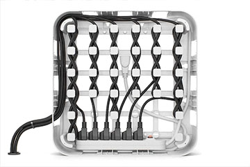 コンセント周りの電源ケーブルを美しく収納できるボックス。1本単位での取り外しも可能