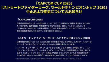 CAPCOM CUP 2020が開催中止。オンラインでの代替イベントを予定