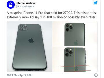 ロゴが斜めにミスプリされたiPhone 11 Proが2,700ドルで取引