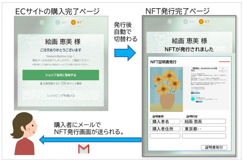当APIをECサイトに接続することで、ユーザーはイーサリアム等の暗号通貨を保有することなく、通常のECサイトと同様にデジタル画像を購入し、NFTを所有出来ます。