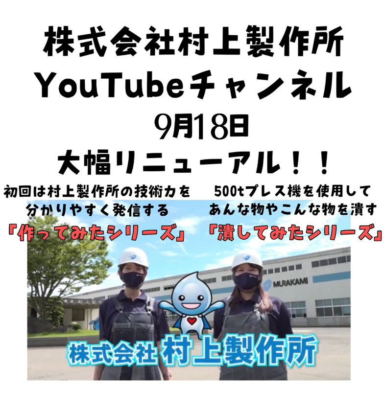 株式会社村上製作所(本社:香川県高松市、代表取締役:村上 幸平)は、自社が運用するYouTubeチャンネルを2021年9月18日よりリニューアルいたします。県外就職の増加を受け、香川県企業の活性化を図りたいという思いから、今回のリニューアルにふみきりました。少子高齢化が進む香川県で村上製作所が中心となり、県内企業の魅力を伝えていきます。