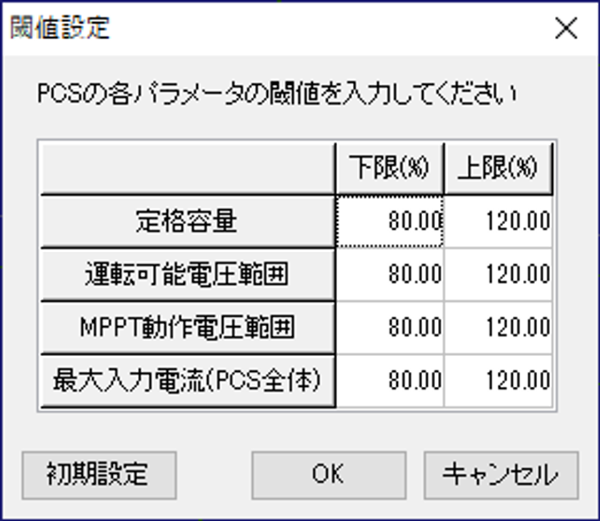 PCSの閾値設定をユーザー設定で保存できるようになり、電気回路構成設定時の入力の手間を