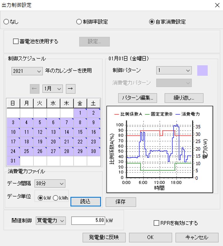 閾値制御の対象を消費電力と買電電力から選択できるようになり、Solar Legatoにより近い設定で自家消費制御シミュレーションを行うことができます。