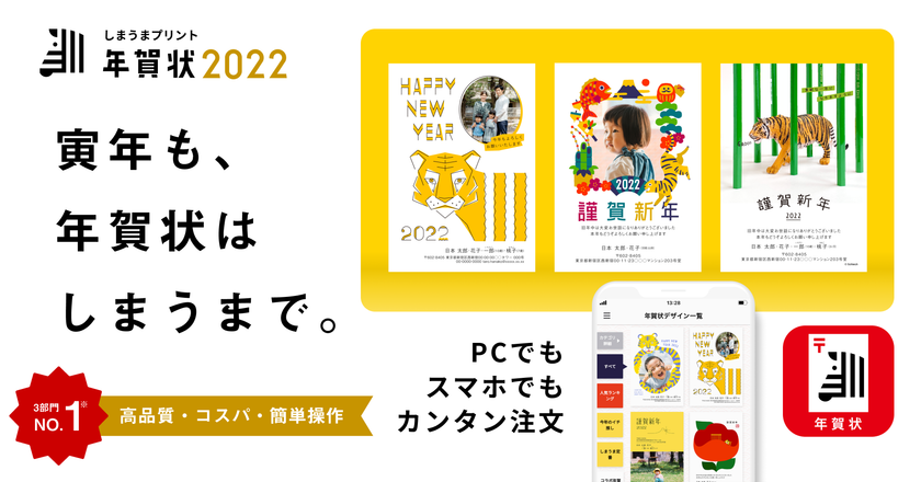 ネットプリントサービスを提供する株式会社しまうまプリント(本社:東京都新宿区、代表取締役社長:高橋 洋一郎)は、PC、iPhone、Androidから簡単に年賀状印刷の注文ができる『しまうま年賀状2022』年賀状プリントサービスの受付を2021年10月1日(金)に開始します。