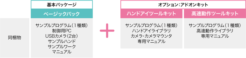 ロボットアームの先端にカメラを搭載するハンドアイ構成によって、カメラの視野が拡がり、実装できる自動化作業が増えます。「ハンドアイツールキット」は、リアルタイムビジュアルフィードバック制御をハンドアイ構成でご使用いただくためのアドオンキットです。カメラが常時動き続けるハンドアイならではの制御の難しさをなくします。移動物体のトラッキングや、エンドエフェクタ(ロボットハンド)制御との相性もばっちりです。