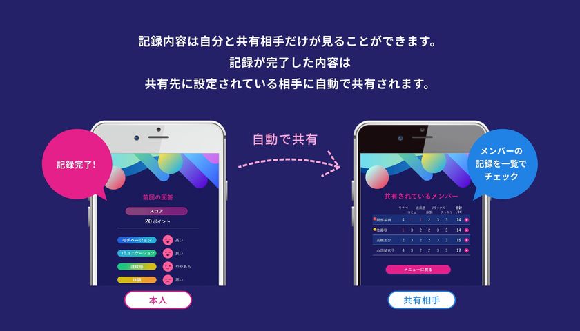 記録した内容は自分と共有先に設定した相手のみが確認できます。