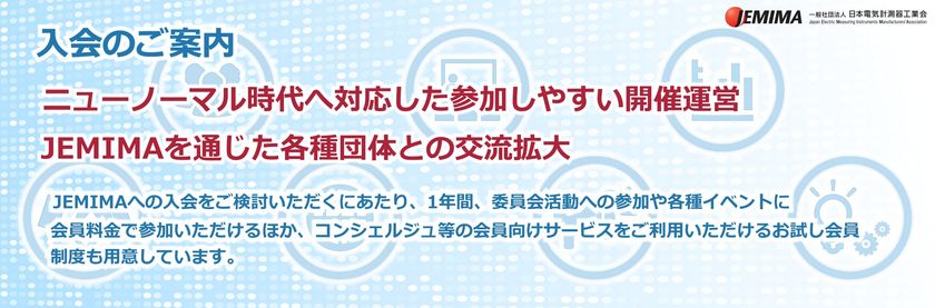 一般社団法人 日本電気計測器工業会(Japan Electric Measuring Instruments Manufacturers' Association:JEMIMA)は、ニューノーマル時代のDXを推進することでさらなる進化と会員企業のビジネスへの貢献を目指し、新規会員を募集します。