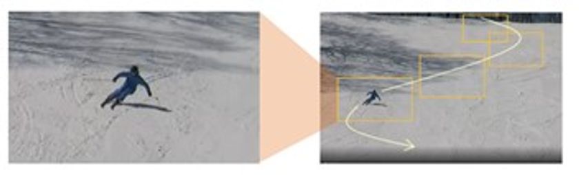 スキーヤー・スノーボーダーをAIが追跡し、被写体を中央に捉えた高度な追尾動画を自動で生成します。固定カメラで撮影した動画をデジタルズームで追跡するため、同時に複数ユーザの撮影が可能です。4K高解像度カメラを採用することで、高画質で滑らかな動画生成を実現します。