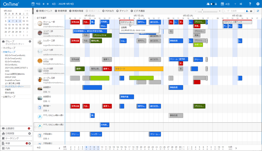 「OnTime(R) Group Calendar」は、日本企業に必須である複数メンバーの予定表示、会議招集、施設予約などを、グラフィカルな画面で高速に操作できるグループスケジュール管理ソフトウェアです。Microsoft Exchange、Microsoft 365に対応する「OnTime for Microsoft」と、HCL Notes/Domino、Verseに対応する「OnTime for Domino」の2つの製品ラインをリリースしています。またモバイルオプション、日程調整オプション等各種オプション製品も準備しています。開発はデンマークに本社をおくIntraVision社が行い、10カ国語に対応、日本で25万ライセンス以上、世界ではヨーロッパを中心に70万ライセンス以上を販売しております。