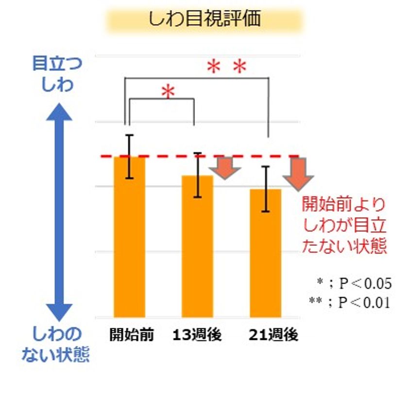 図3:しわの目視による評価において、「4'-DeNOB」含有化粧水の使用によりしわ改善を確認