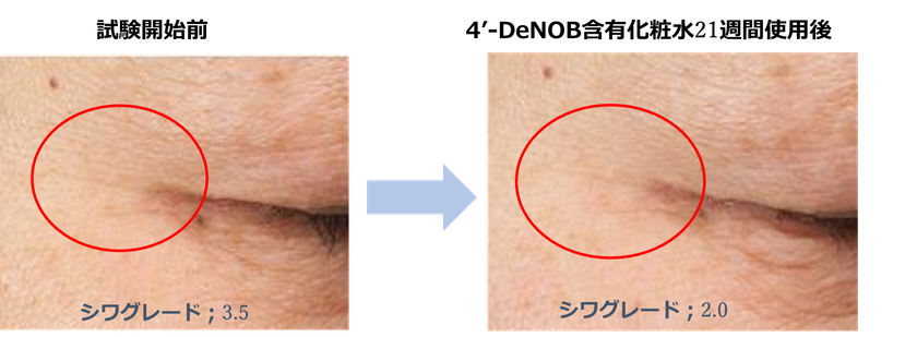 ■「4'-DeNOB」含有化粧水の使用試験でシワの改善を確認