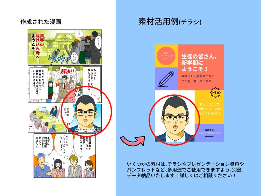 作ったキャラクター素材は別途、お客様に様々な用途で活用していただけますよう、切り取った別のデータとして納品いたします。