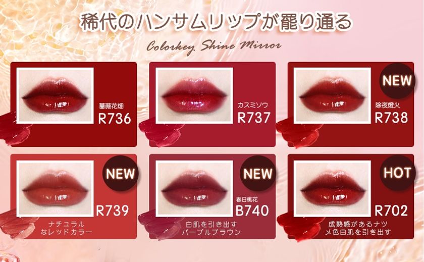 ガラスの光沢が反射する艶めくみずみずしい唇が仕上がり!透明度が高く、ツヤツヤと立体的な唇を作り少女のようなピューアな印象に!