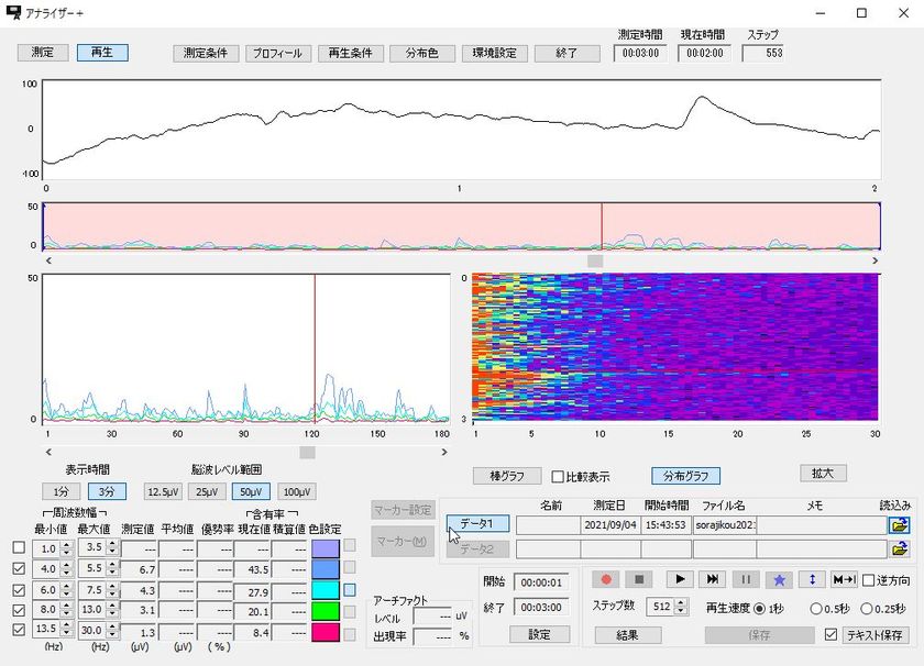 脳波測定からも、β波などの脳内の反応が起こっており、こういった刺激を定期的に脳内に入れることで働き掛けていきます。