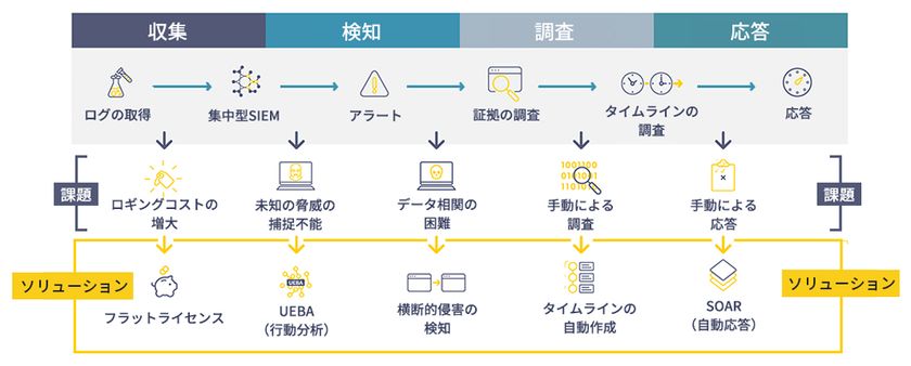 ・未知の脅威はUEBAで検知、インシデント管理、またはSOARによる自動対応
