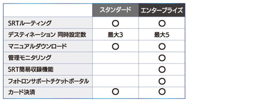 IP映像伝送(SRTアクセスポイント/ルーティング)機能比較表