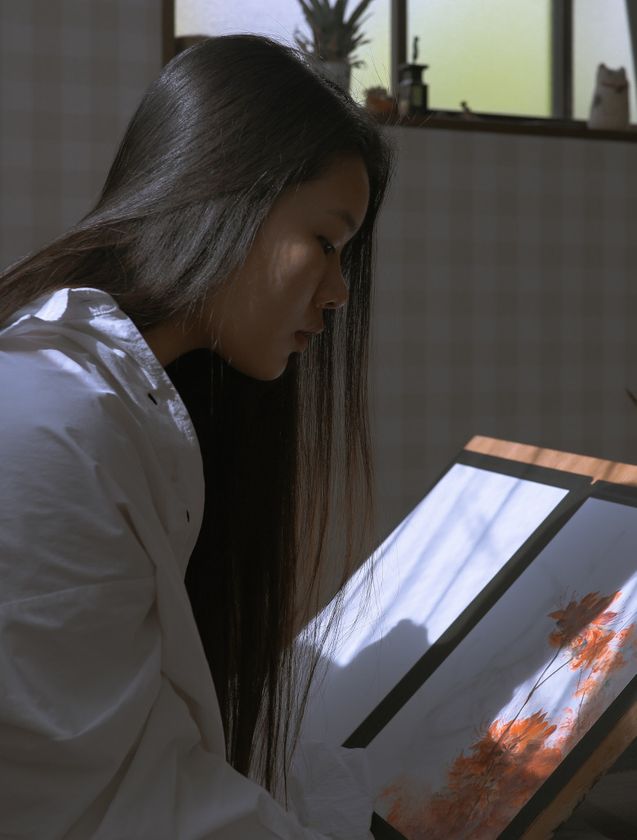 中国の伝統的な水墨画を学びながらも「もっと自由に描きたい」と来日。日本画の伝統的な画材「岩絵具」に魅了され、ひたすら筆を握る彼女の素晴らしい作品を、これからもずっと見れるのだろうかと考えると、切ない気持ちになるのです。