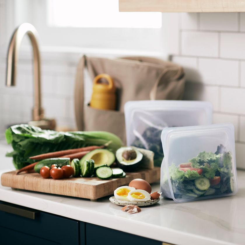 アメリカ発のシリコーン製食品用保存容器で、現在世界50ヵ国以上で展開されています。原料は食品用品質のプラチナシリコーン100%で、洗浄して何度もリユースできる環境に優しい商品です。密閉力が高く、液漏れの心配もないので漬物つくりにもおすすめです。今回のキャンペーンではベーシックな「EZサンドイッチ」とマチのある「スタンドアップ」の2種類をセットにしてお送りいたします。