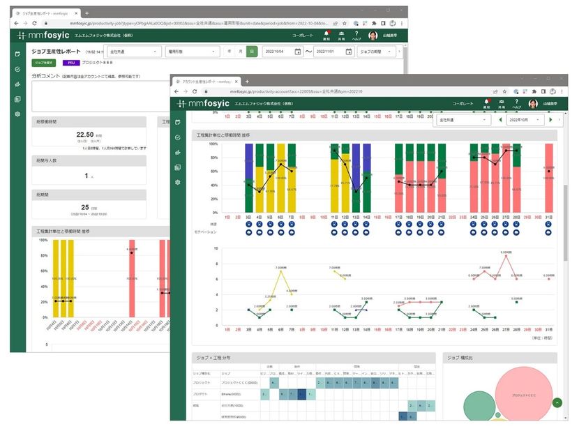 夢創IT株式会社(本社:東京都新宿区、代表取締役:岩崎 創、以下「当社」)は、従業員の生産性向上を支援するクラウドサービス「mmfosyic(エムエムフォジック)」の新機能を2022年11月7日にリリースいたします。新しく追加される機能は、個人の活動を分析し本人や上長をはじめ360度で振り返ることができる「アカウント生産性レポート」と、プロダクト運営やプロジェクトを多方面から分析する「ジョブ生産性レポート」です。個人やジョブの日々の活動を可視化し、目的意識を醸成することで生産性向上に寄与します。これらのレポートは、当社が生産性向上のコンサルティングを行ってきた中から作られた、実績のある実務に則したレポートになります。