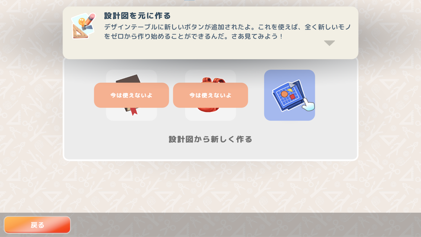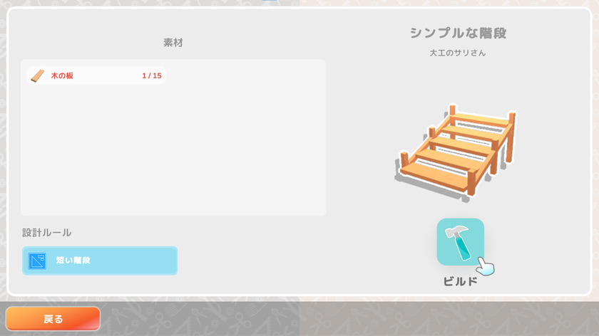 クラフトレシピは、大工のサリーから購入したり、隣人を助けてランダムに入手したりすることができます。橋、ランプ、椅子、ベッドなど、さまざまな特定のアイテムや建物に加えて、大きいサイズなオブジェのレシピもあって、創造性を発揮することができます。クラフトレシピには、デザインの最大サイズと最小サイズが記載されているので、サイズの範囲内であれば、ユニークなアイテムを作ることも可能です。以前のデザインを改良する場合は、直接レシピにアクセスして変更します。