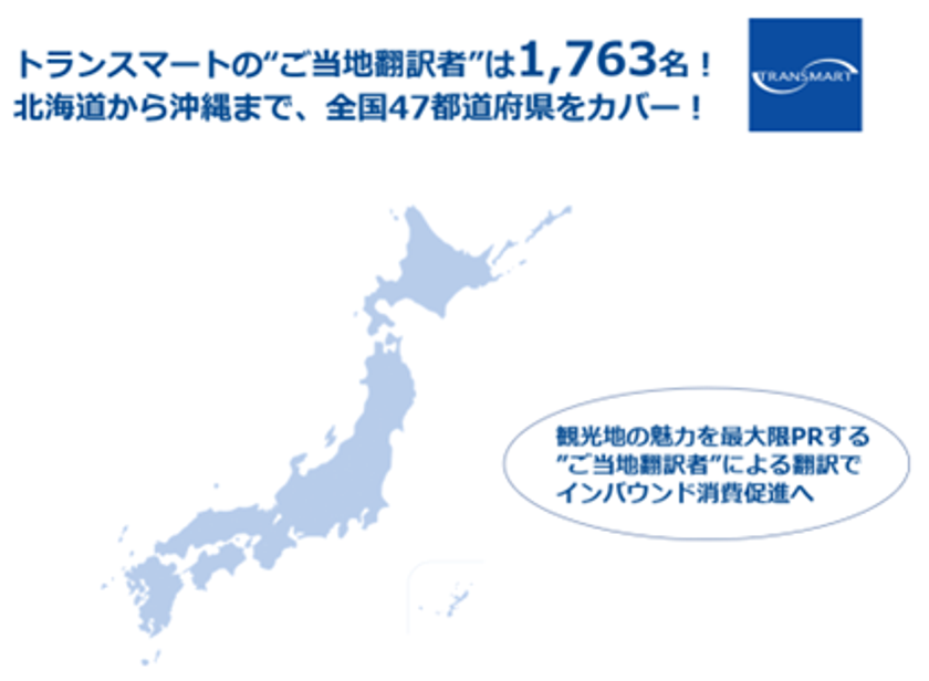 尚、トランスマートの“ご当地翻訳者”は1,763名(※)おり、全国47都道府県をカバーしています。