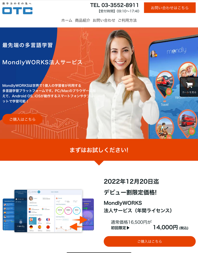 株式会社オーティーシー(本社:大阪府大阪市、代表取締役:棚橋 豪)は、2022年11月2日に1,000通りの言語の組み合わせで41言語を学習できる多言語学習プラットフォーム「Mondly by Pearson」の開発・運営をするルーマニアのATI STUDIOS A.P.P.S SRLと業務提携を締結し、「MondlyWORKS」の日本初の法人サービスの提供を開始しました。MondlyWORKSはMondly Businessの他に無料でMondly Kids及び拡張現実と音声認識機能を備えたチャットボットを導入した最初の語学学習体験アプリのMondly ARのライセンスが含まれます。