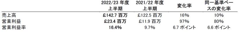 ■ 営業利益は2,340万ポンドと、2021/22年度上半期の1,190万ポンドからほぼ倍近い伸びとなっています。