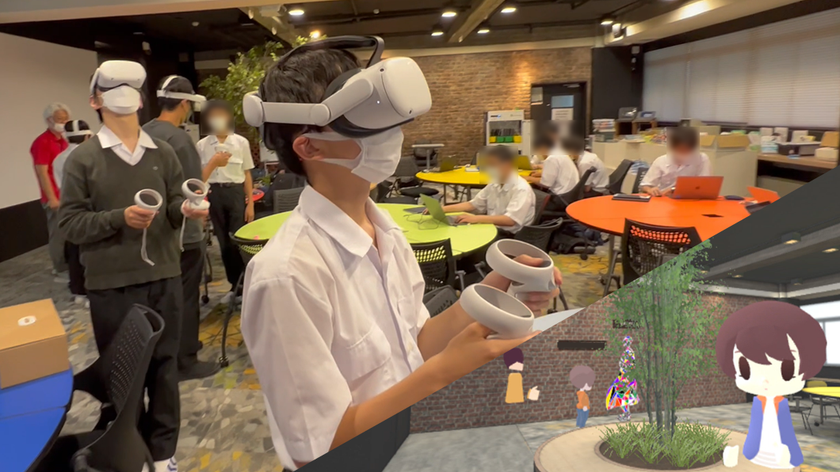 使用するデジタル技術はVR(メタバース)技術で、物理的な制約や距離・コストに囚われず、自由に表現した成果物の発表を行う「研究発表会」と、アバターの身振り手振りを交えつつ対面以上に気軽にコミュニケーション(英会話)を行う「国際交流会」の2つのテーマで実証を行います。