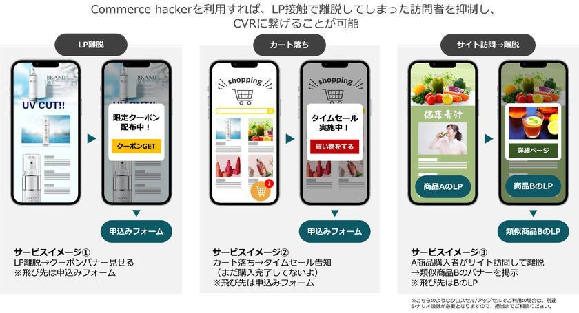 その取り組みの一環として、今年5月に、サイト来訪者の離脱防止と、見込み顧客に分かりやすいキャンペーンなどのお知らせを提示する機能を持つLP離脱防止ツール「Commerce Hacker(※1)」を提供しております、昨今のCookieレス問題に代表される「1度サイトから離脱してしまった方へのアプローチ」についてのご相談をいただく機会が増えてきておりました。