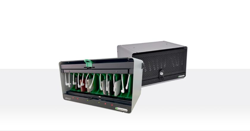 スタッフ共有用の端末や患者、入所者などへの貸出用端末の管理/運用に最適です。ダイヤル式ロックなので鍵を失う心配もありません。LEDライトで返却/充電状況も一目瞭然。他に16台モデルもあり、組み合わせて重ね置きもできます。