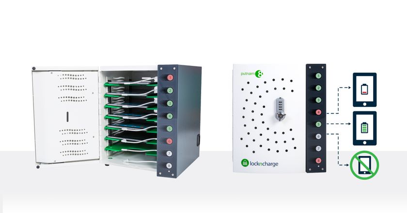 <8台のiPadや小型ノートパソコンを省スペースで充電・保管・盗難防止>