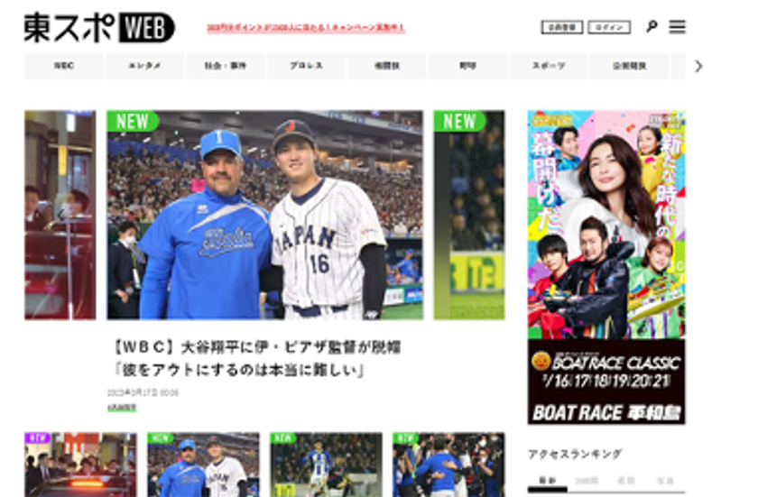 「東スポWEB」は東京スポーツ新聞社が運営する総合メディアサイトです。東スポ本紙と同じく「想像を超えた創造力で驚きと喜び、笑いと夢を生む」ことを使命とし、看板のエンタメ、プロレスから、スポーツ、UMA情報まで、ユーザーの皆さまの日常を彩るエキサイトなコンテンツを日々幅広く発信しております。