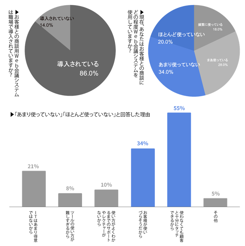 ●Web会議システムが使われていない理由は「お客様が使いづらそうだから」。