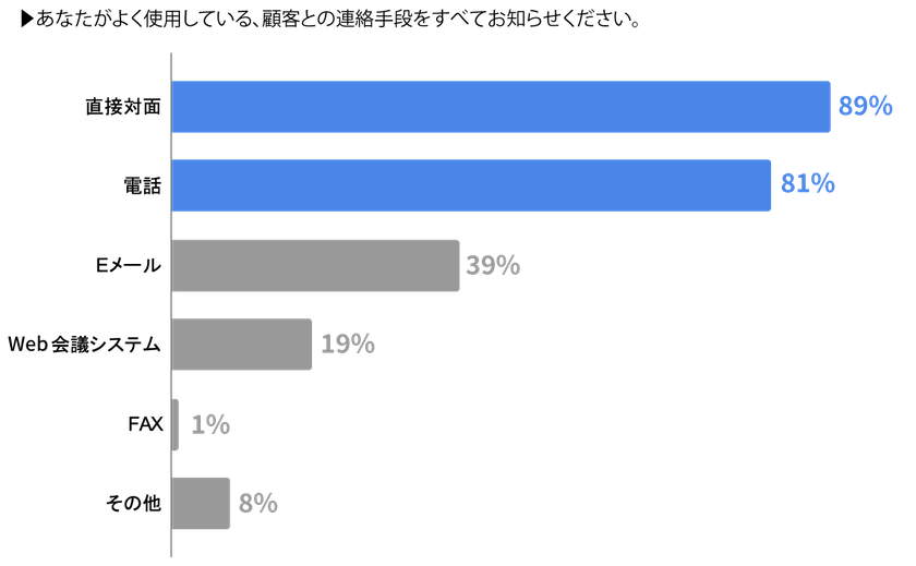 ●実際のコミュニケーション手段は「直接対面」と「電話」の2つが圧倒的。