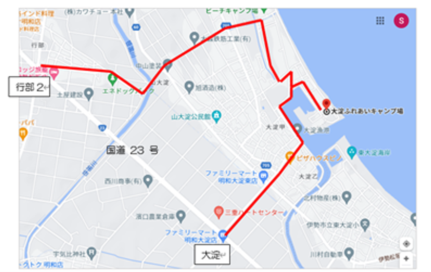 伊勢方面から → 国道23号線 明和町「大淀」交差点左折