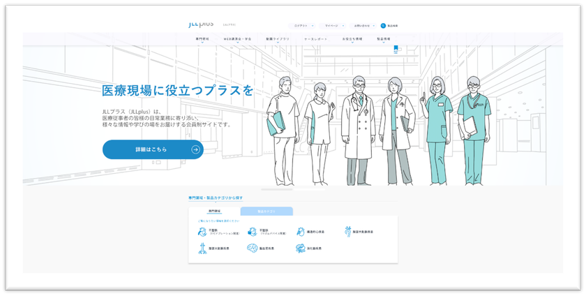 医療機器業界において、医療従事者が製品を安全かつ適正に使用するためには、製造販売業者による情報提供が欠かせません。最近は医療従事者が製造販売業者からの情報を収集する際、デジタルメディアを活用することが増えています。また医師の時間外労働の上限規制の適用開始(2024年4月)に向け、医療機関では「医師の働き方改革」への対応が必要であり、医師の業務時間の制約が生じることが想定されています。このような環境変化の中、医師の皆様が場所・時間の制約なく主体的に情報収集ができるサイト『JLLプラス(JLLplus)』を開設いたしました。