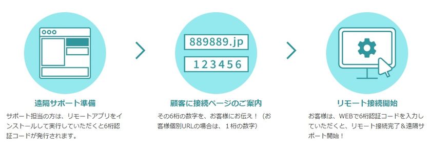 電話やチャットで、6桁の数字をユーザー様に、お伝えし、番号をWEBで入力すれば、画面の共有が可能になります!(非常に簡単です)