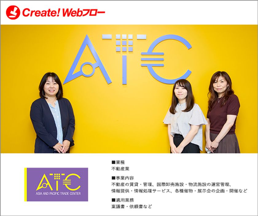 インフォテック株式会社(本社:東京都新宿区、代表取締役社長:山田 智次)は、不動産の賃貸・管理、国際卸売施設・物流施設の管理や、大規模複合施設(通称・大阪南港ATC)を運営するアジア太平洋トレードセンター株式会社(所在地:大阪市住之江区、代表取締役社長:木村 繁)の、ワークフローシステム「Create!Webフロー」導入事例を公開しました。