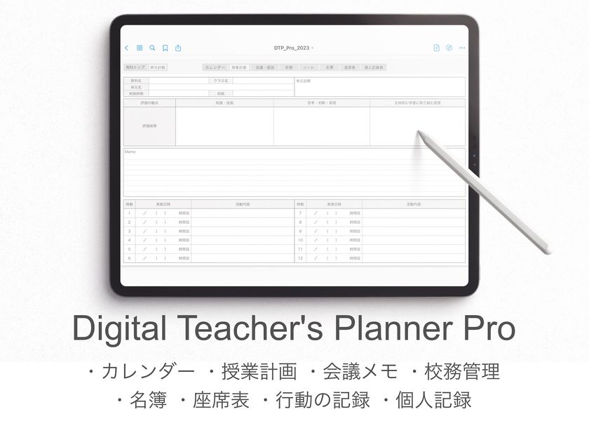 『Digital Teacher's Planner(デジタルティーチャーズプランナー)』は、元教員がデザインしたPDF形式の教師手帳で、iPadの手書きアプリなどに読み込んで使用する製品です。