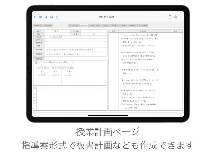 さらにPro版では、スケジュール管理のほか、授業計画や名簿、座席表、児童・生徒個人記録表、校務別スケジュール、会議ノートなどが作成可能です。