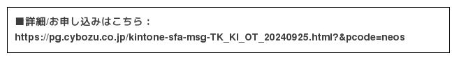 テクミラホールディングスの子会社であるネオス株式会社(本社:東京都千代田区、代表取締役 社長執行役員:池田 昌史、以下 ネオス)は、業務改善プラットフォーム「kintone」を提供するサイボウズ株式会社(本社:東京都渋谷区、代表取締役社長:青野 慶久、以下サイボウズ)が9月25日(水)に開催するオンラインセミナー「kintoneで実現するマンション・戸建て販売のSFA管理」に登壇します。