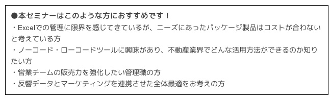 ■ 不動産業界向けセミナー「kintoneで実現するマンション・戸建て販売のSFA管理」