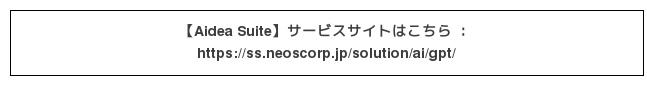 ネオスでは、チャットボット事業を通じて培ってきたAIの知見や技術を活かし、各社専用のセキュアなAIチャット環境をスピーディーに構築・提供することが可能なフレームワーク【Aidea Suite】を提供しています。組織内における安心・安全なGPT利用に加え、固有の業務やサービスニーズにフィットさせたAIソリューションへのカスタマイズにも対応しています。企画検討段階からご要望に応じた活用提案を行うことでビジネスにおけるGPTモデルの活用を幅広く支援するとともに、最新言語モデル「GPT-4o」対応により最先端のAI導入を手軽に実現いたします。